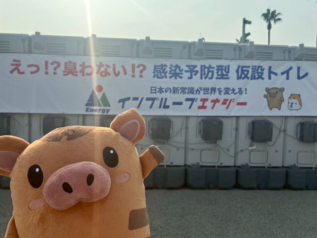 2025年8月23日(土)に開催された『泉州夢花火2025 in泉南』において、今年も当社グループ会社インプルーブエナジー株式会社が提供する感染予防型仮設トイレを48基 設置いたしました。